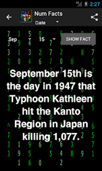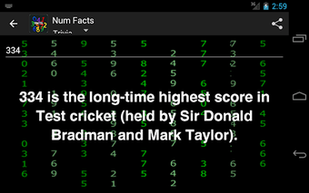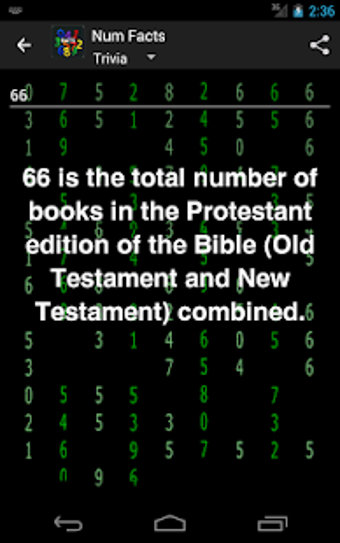 Num Facts är en gratis livsstilsapp för Android som syftar till att förse användare med fascinerande fakta om olika siffror. Appen innehåller en mängd intressanta uppgifter, som att 42 är antalet små rutor som bildar vänstra sidan av Microsofts Windows 98-logotyp, och att 5 är antalet platoniska kroppar. Med en enkel och användarvänlig design gör appen det lätt för användare att utforska och lära sig om matematikens och siffrornas värld.